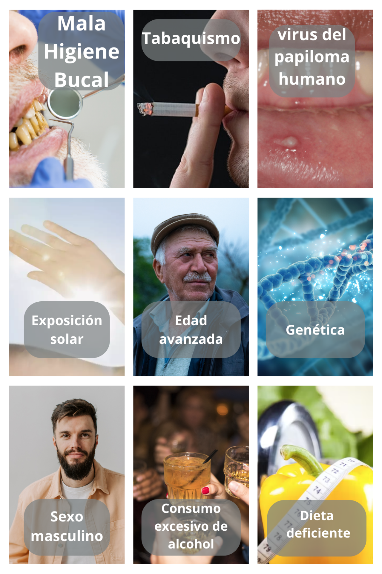 El cáncer oral es un tipo de cáncer que se desarrolla en los tejidos de la boca, incluyendo labios, lengua, encías, paladar, parte interna de las mejillas y la base de la lengua. Generalmente comienza como una llaga, bulto o mancha que no cicatriza y puede causar dolor, sangrado o dificultad al masticar o hablar.